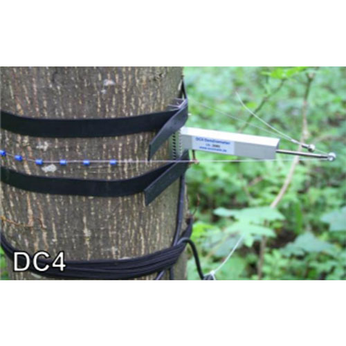 DC3和DC4是DC1改進(jìn)版本。鋼絲繩的拉力改為徑向設(shè)置。這樣鋼絲繩對樹的壓力和樹徑無關(guān),不同樹徑的測量結(jié)果可直接比較。傳感器通過一個由熱膨脹系數(shù)低的合金制成的鋼絲繩固定在樹上。用小塑料環(huán)減少鋼絲繩對樹的壓力,并減少摩擦阻力,大大提高靈敏度。