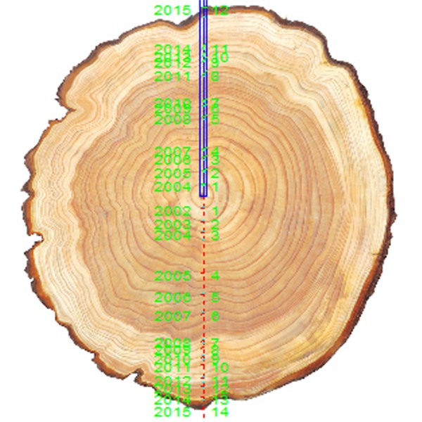 年輪計數、年輪環(huán)寬度、早材/晚材寬度,年輪環(huán)角度;