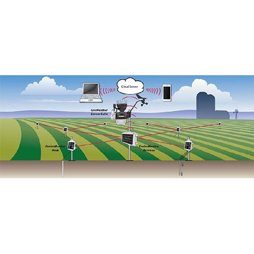 每個節(jié)點可直接連接多種傳感器(0-4個),直接收集測量數(shù)據(jù),然后將數(shù)據(jù)發(fā)送給網(wǎng)關(guān)。1個網(wǎng)關(guān)可以掛載至少20個節(jié)點(也可以直接連DAVIS接傳感器組件ISS),通過蜂窩網(wǎng)絡(luò),網(wǎng)關(guān)將數(shù)據(jù)推送到云端服務(wù)器上,用戶可使用電腦、平板或者智能手機訪問這些數(shù)據(jù)。