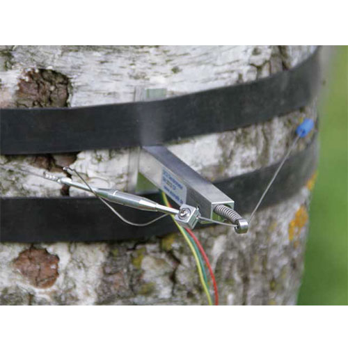 用途:DC2樹干周長生長變化記錄儀是DC1樹干周長生長變化記錄儀的改進版本。鋼絲繩的拉力改為徑向設置。這樣鋼絲繩對樹的壓力和樹徑無關,不同樹徑的測量結果可直接比較。傳感器通過一個由熱膨脹系數低的合金制成的鋼絲繩固定在樹上。用小塑料環減少鋼絲繩對樹的壓力,并減少摩擦阻力,大大提高靈敏度。